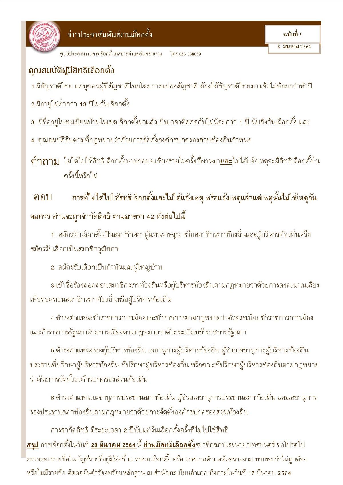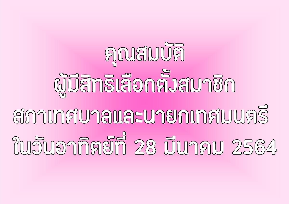 คุณสมบัติผู้มีสิทธิเลือกตั้งสมาชิกสภาเทศบาลและนายกเทศมนตรี ในวันอาทิตย์ที่ 28 มีนาคม 2564