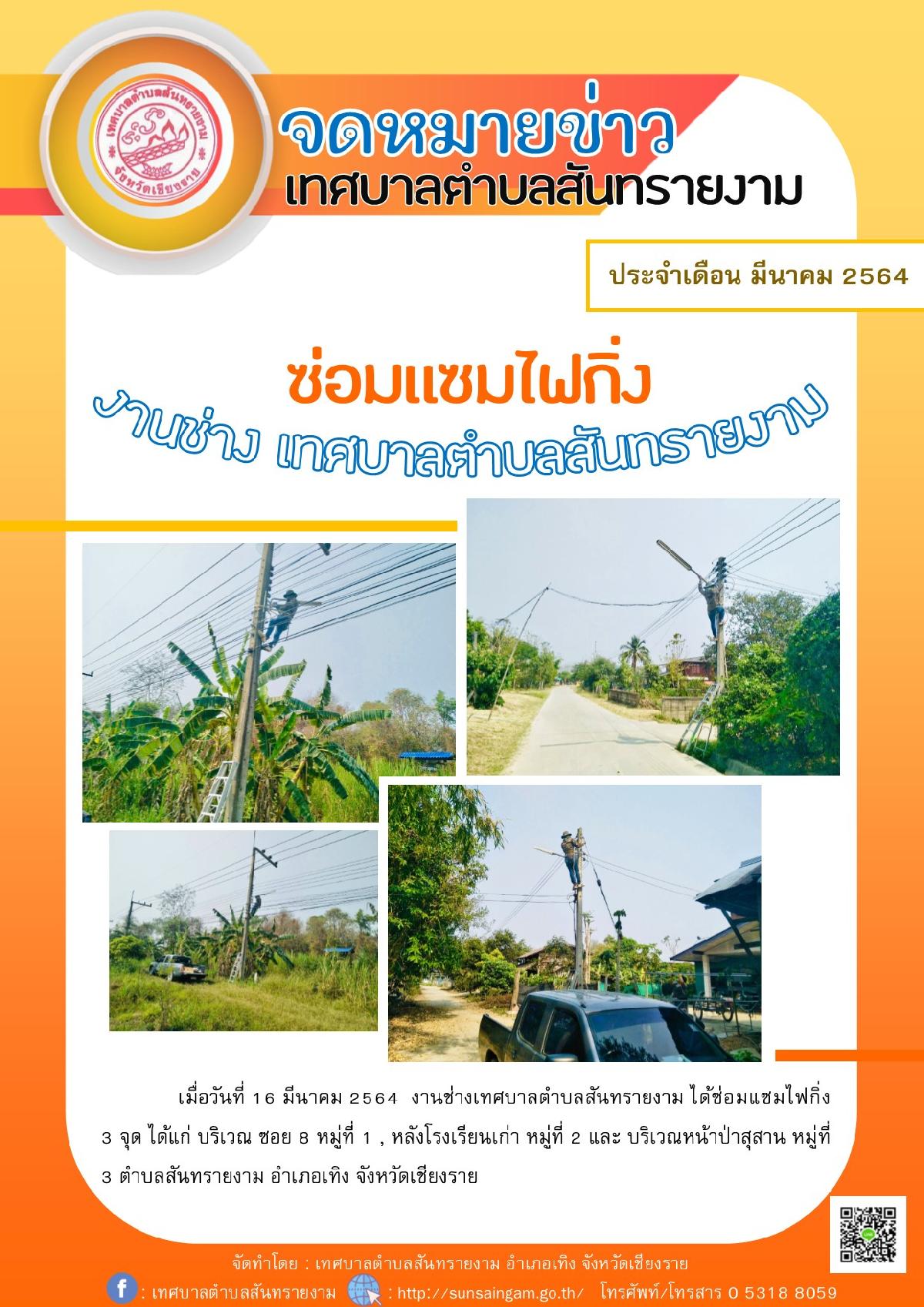 จดหมายข่าว งานช่างเทศบาลตำบลสันทรายงาม ประจำเดือน มีนาคม 2564