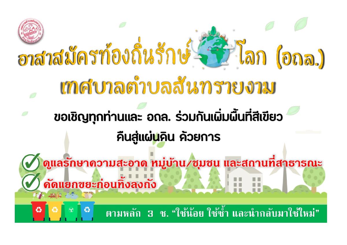 อาสาสมัครท้องถิ่นรักษ์โลก (อถล.) เทศบาลตำบลสันทรายงาม เชิญร่วมกันคัดแยกขยะก่อนทิ้ง และ เพิ่มพื้นที่สีเขียว ในพื้นที่ตำบลสันทรายงาม