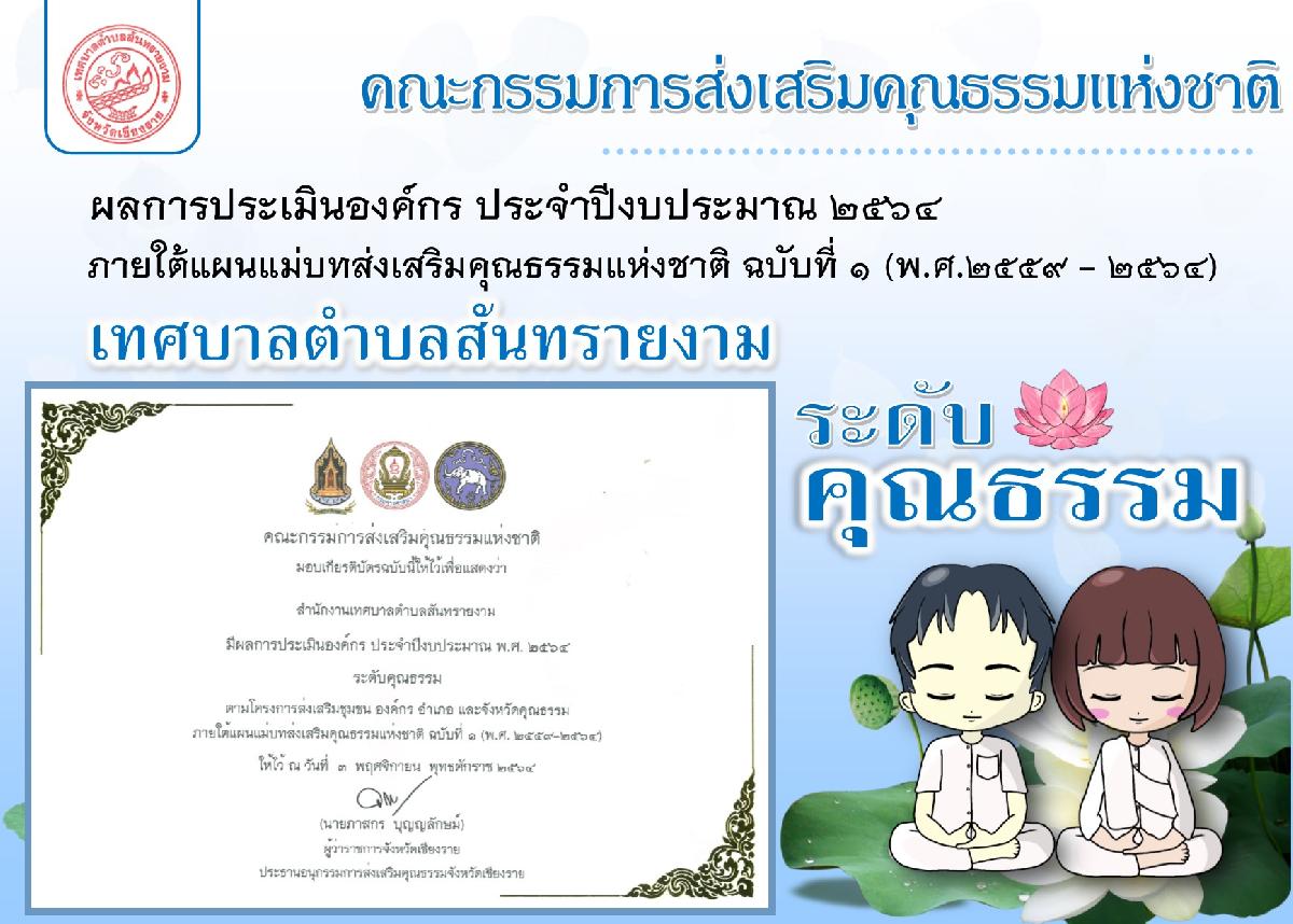 ผลการประเมินองค์กร ประจำปีงบประมาณ ๒๕๖๔ ภายใต้แผนแม่บทส่งเสริมคุณธรรมแห่งชาติ ฉบับที่ ๑ (พ.ศ.๒๕๕๙ - ๒๕๖๔)