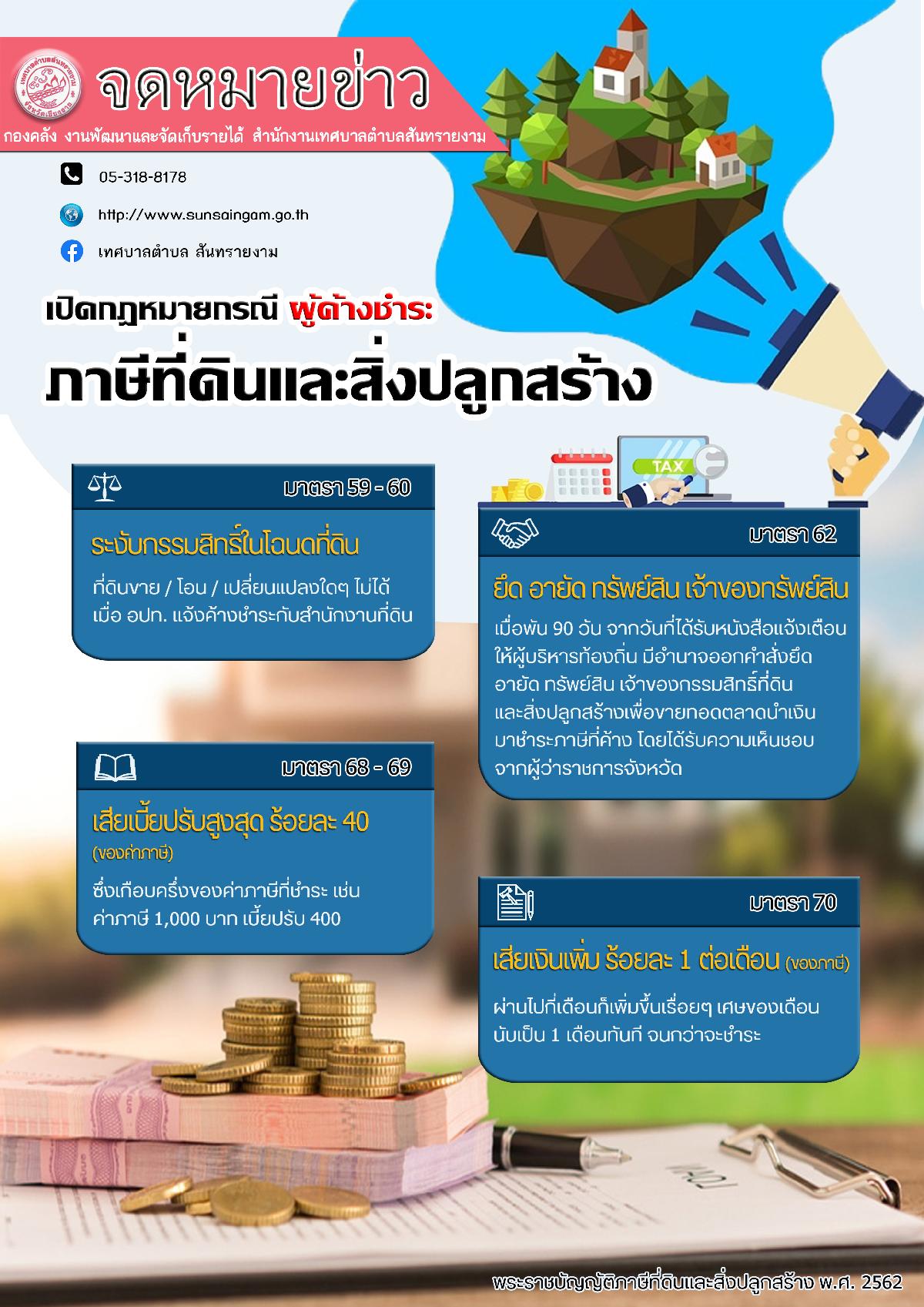 จดหมายข่าว...เปิดกฎหมาย กรณีผู้ค้างชำระภาษีที่ดินและสิ่งปลูกสร้าง